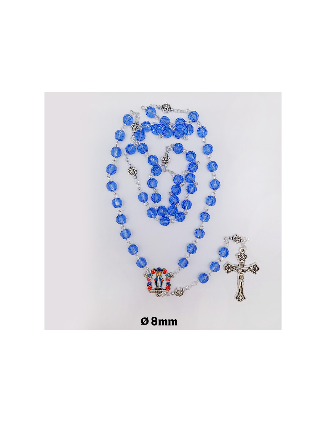 Rosario Cristal Virgen Milagrosa Tallado Azul 8Mm Paters Rosa Metal Maria A Colores