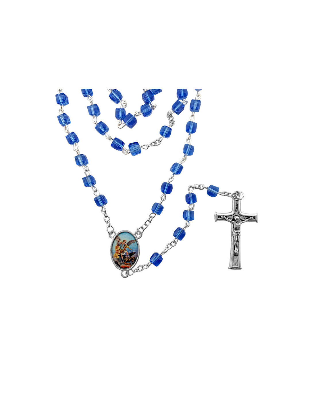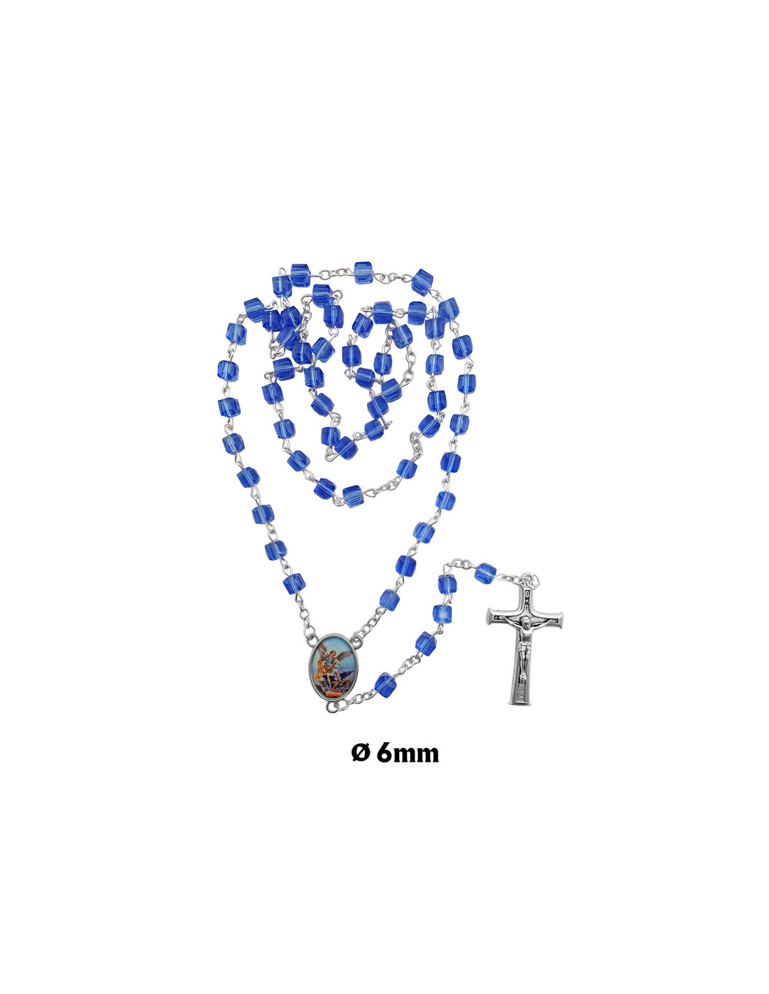 Rosario Cristal Forma Cubo 6X6mm Azul