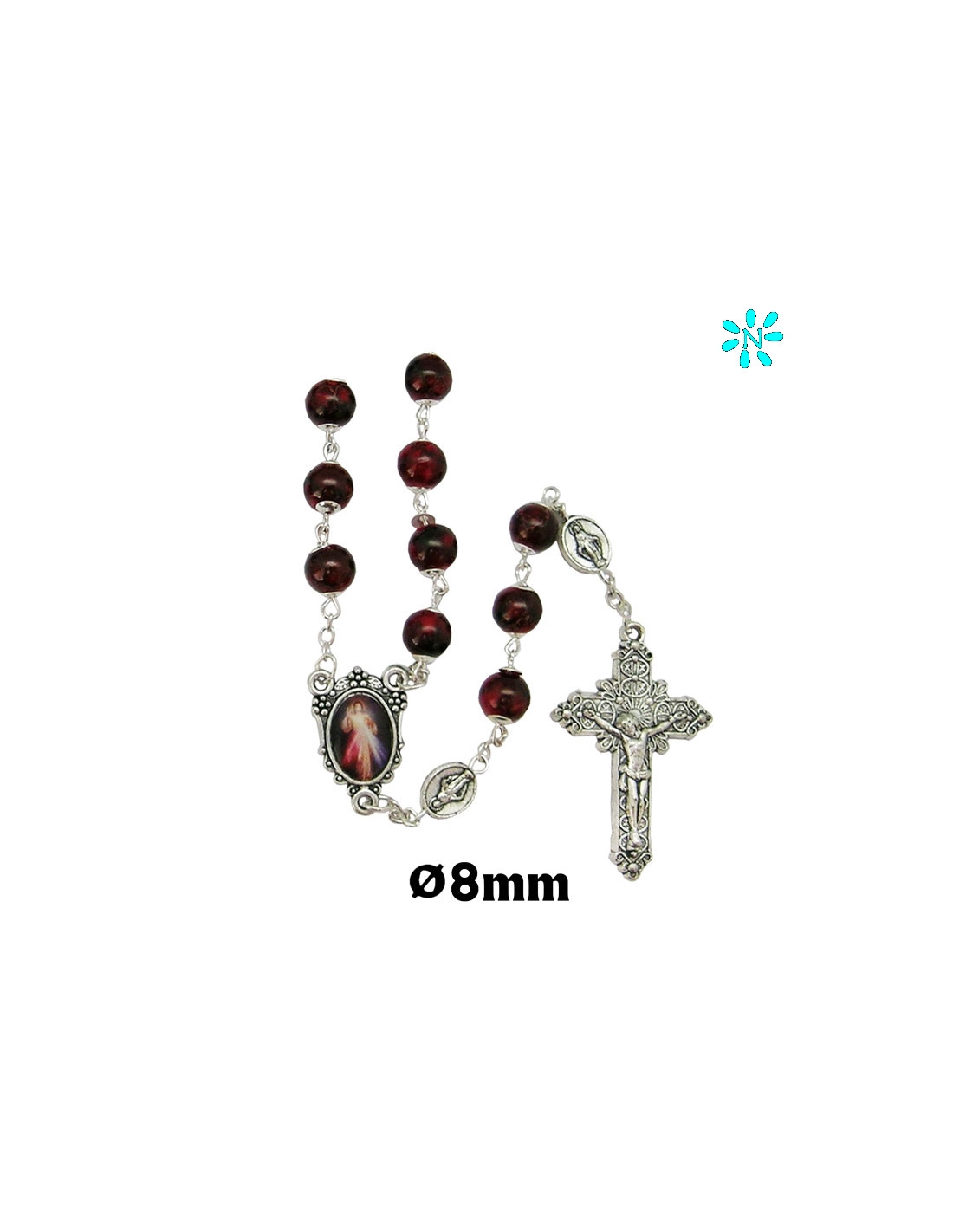 Rosario Cristal Virgen Milagrosa Tallado Azul 8Mm Paters Rosa Metal Maria A Colores