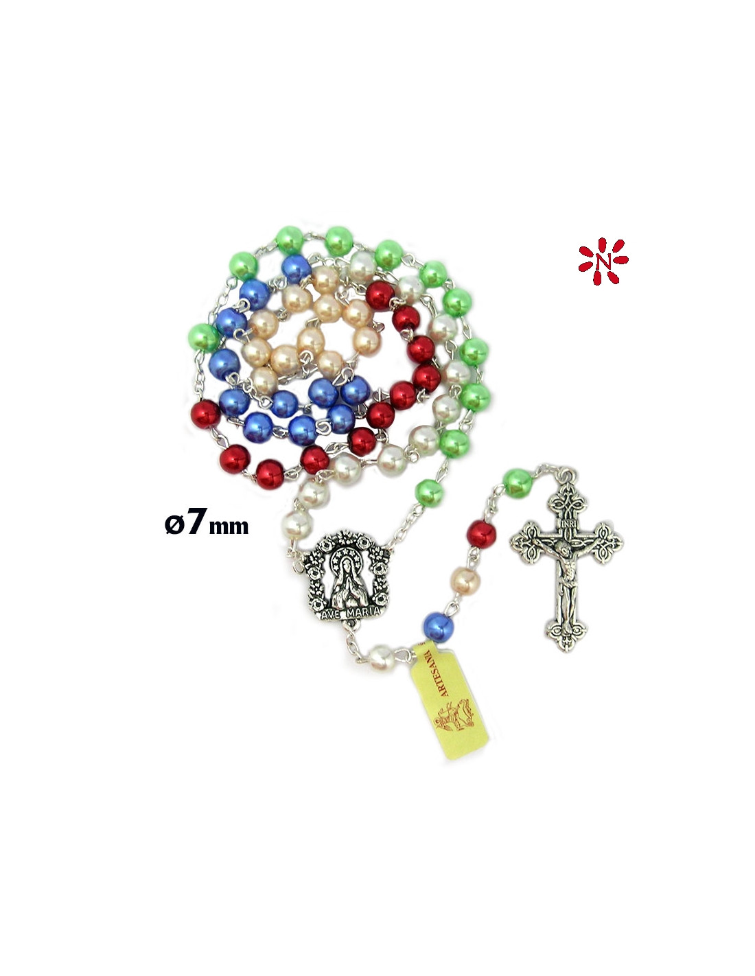 Rosario Cristal Virgen Milagrosa Tallado Azul 8Mm Paters Rosa Metal Maria A Colores
