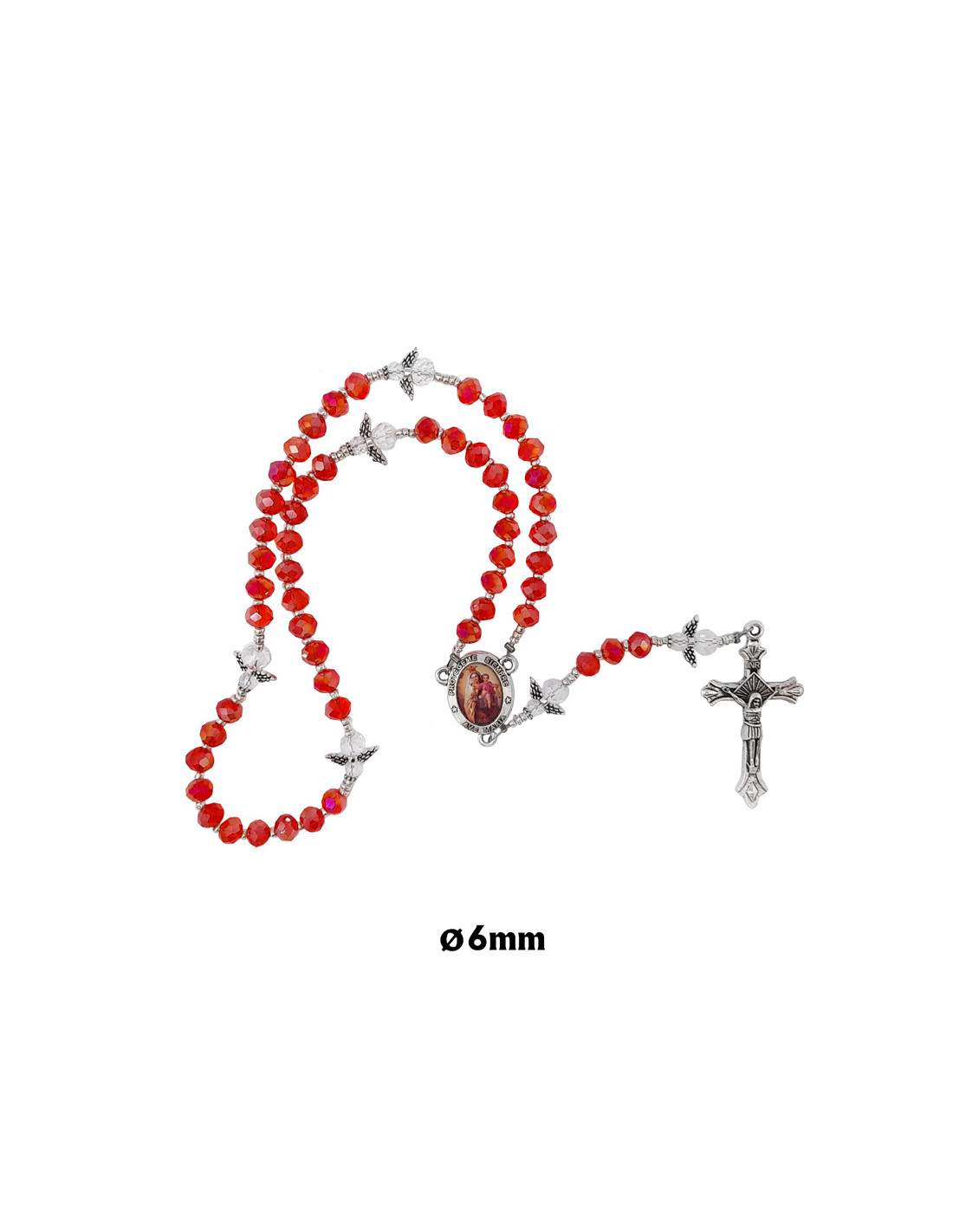 Rosario Cristal Tallado Rojo 6X4mm Paters Angelitos Cristal Alas Metal