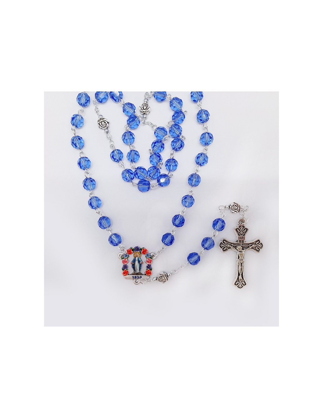 Rosario Cristal Virgen Milagrosa Tallado Azul 8Mm Paters Rosa Metal Maria A Colores