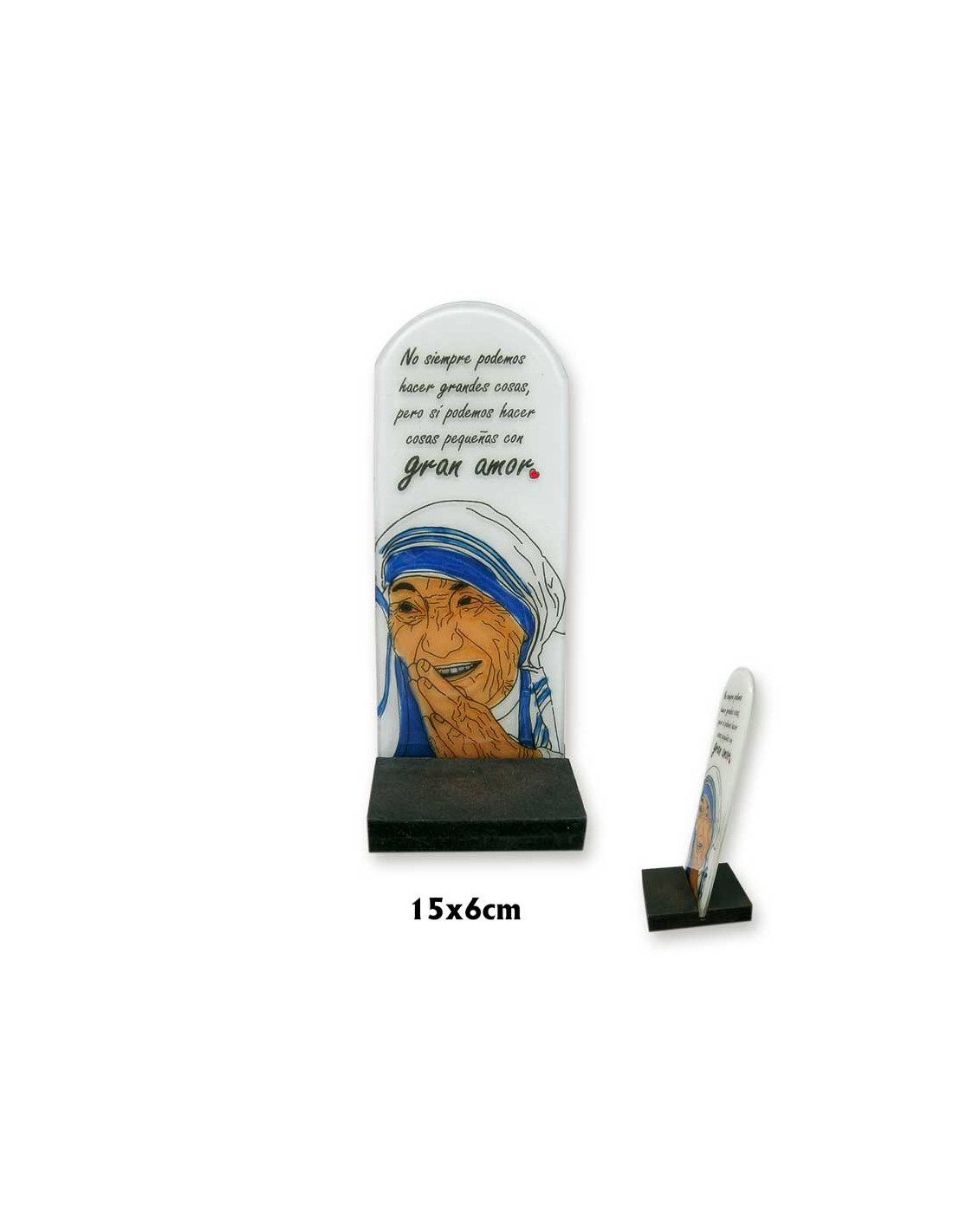 Vidriera Cristal 15X6cm Madre Teresa De Calcuta Con Frase Con Base