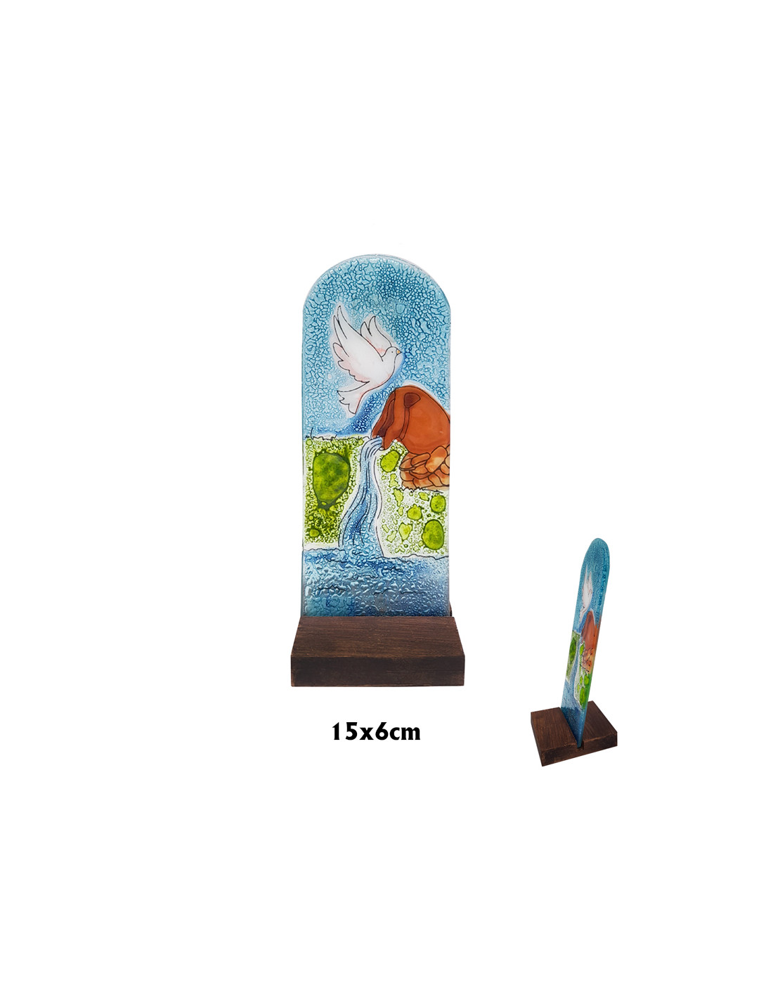 Vidriera Cristal 15X6cm Paloma Con Vasija Que Mana Agua Con Base