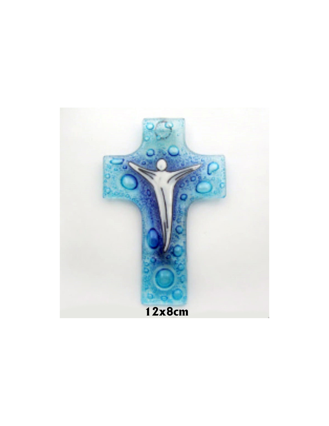 Cruz Cristal 12X8cm Cristo Moderno Fondo Azul
