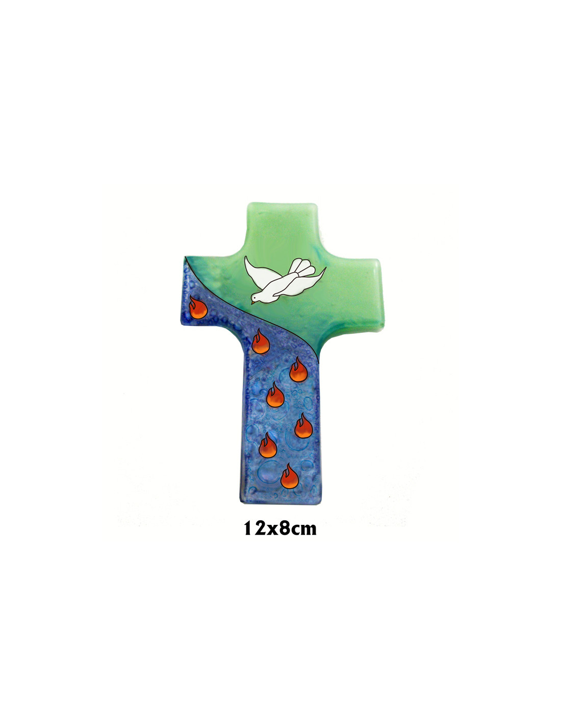 Cruz Cristal 12X8cm Paloma Con 7 Llamas