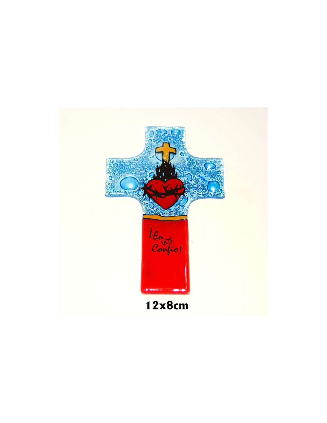 Cruz Cristal 12X8cm Sagrado Corazon De Jesús En Vos Confio