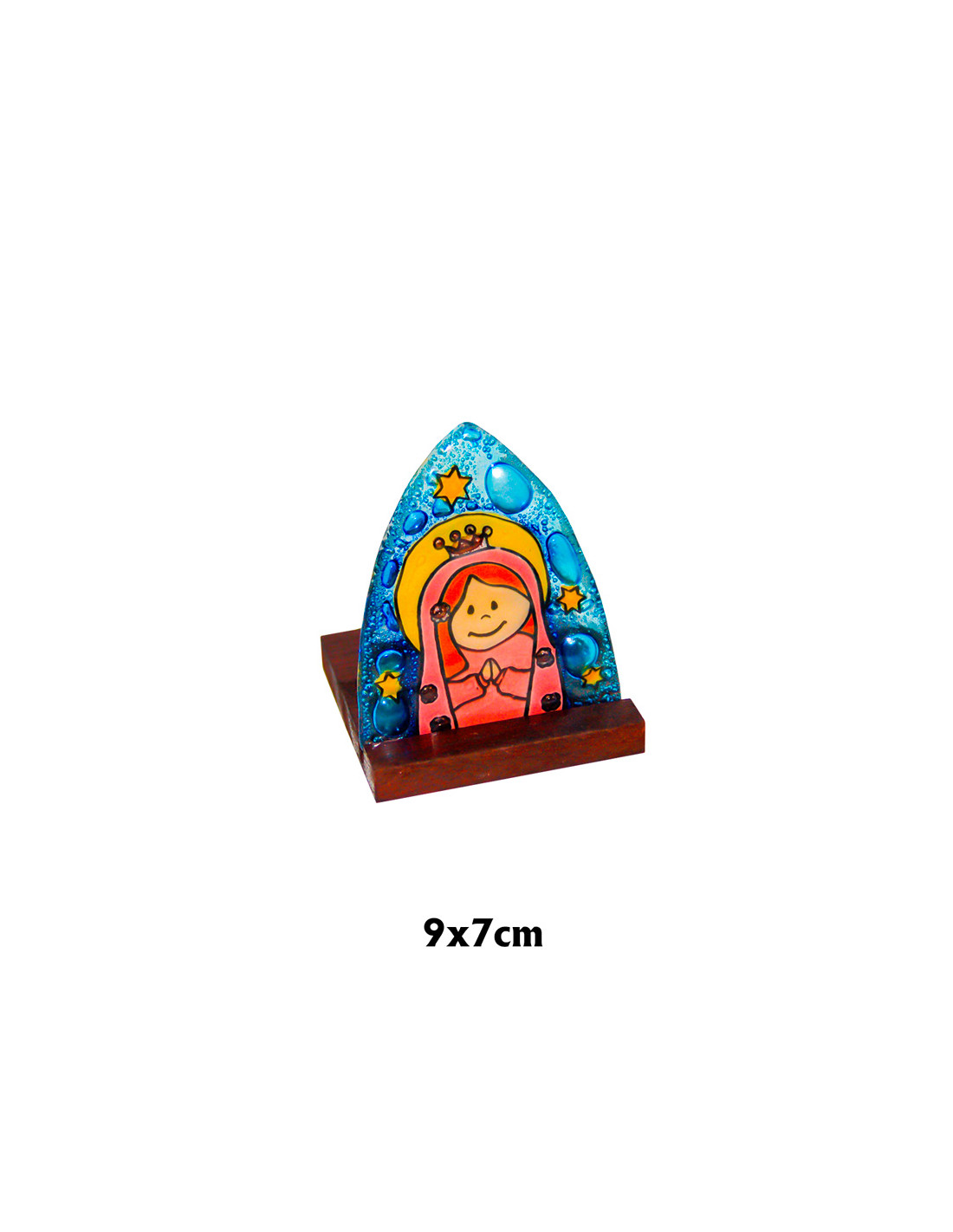 Placa Oval Cristal 9X7cm Virgen Infantil Con Base Madera Y Vela