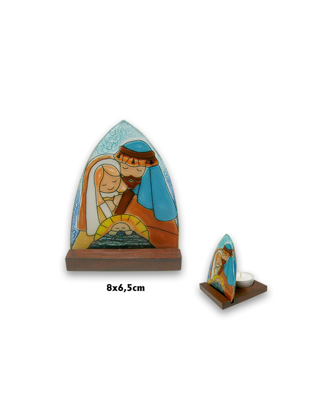 Nacimiento Placa Oval Cristal 9X7cm Sagrada Familia Niño En Cuna De Frente Con Base Madera