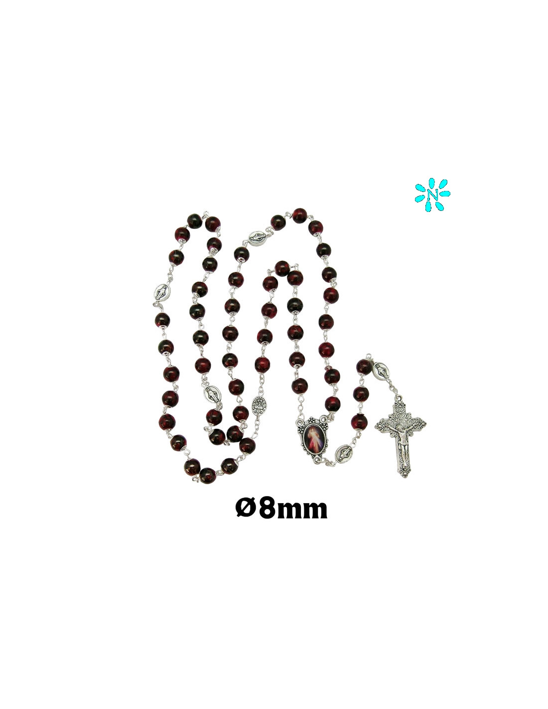 Rosario Cristal Liso 8Mm Estampado Rojo Copetas Y Paters Milagrosa