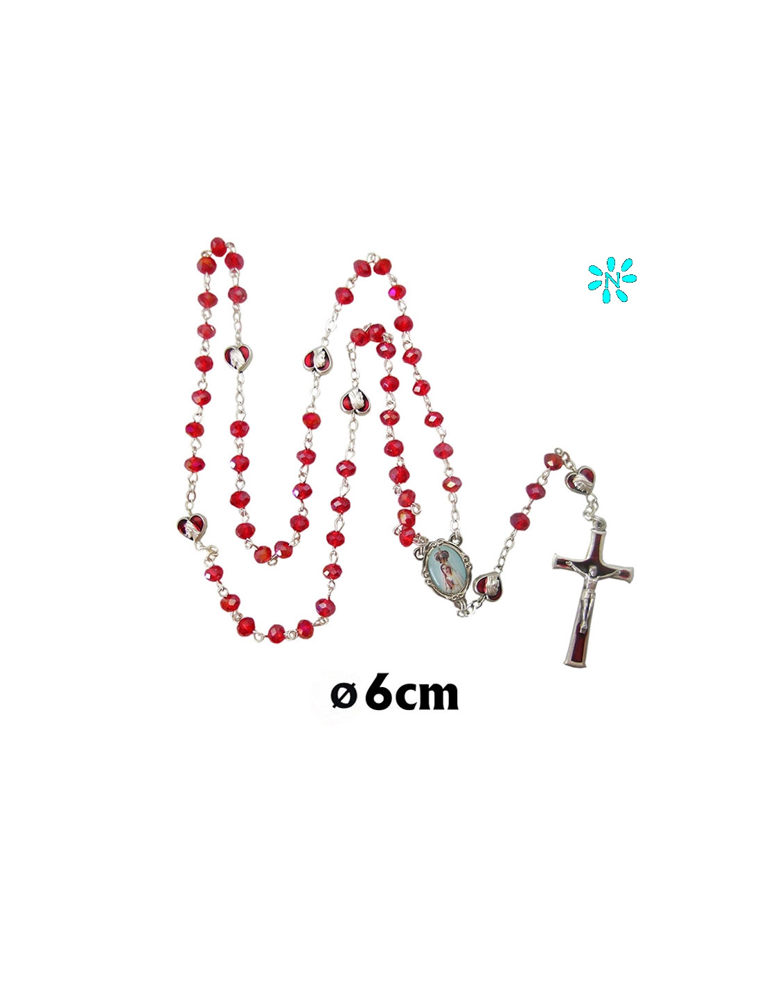 Rosario Cristal Bola Tallada Corazon De Maria Con Cruz Esmaltada Roja