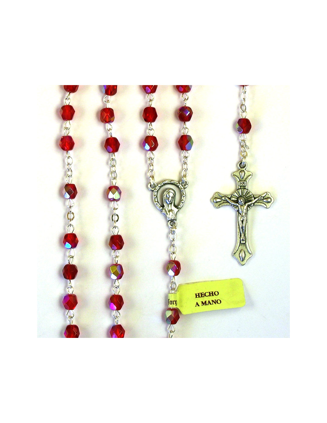 Rosario Cristal Tallado 6Mm Rojo Pater 10Mm Con Rosa Interna