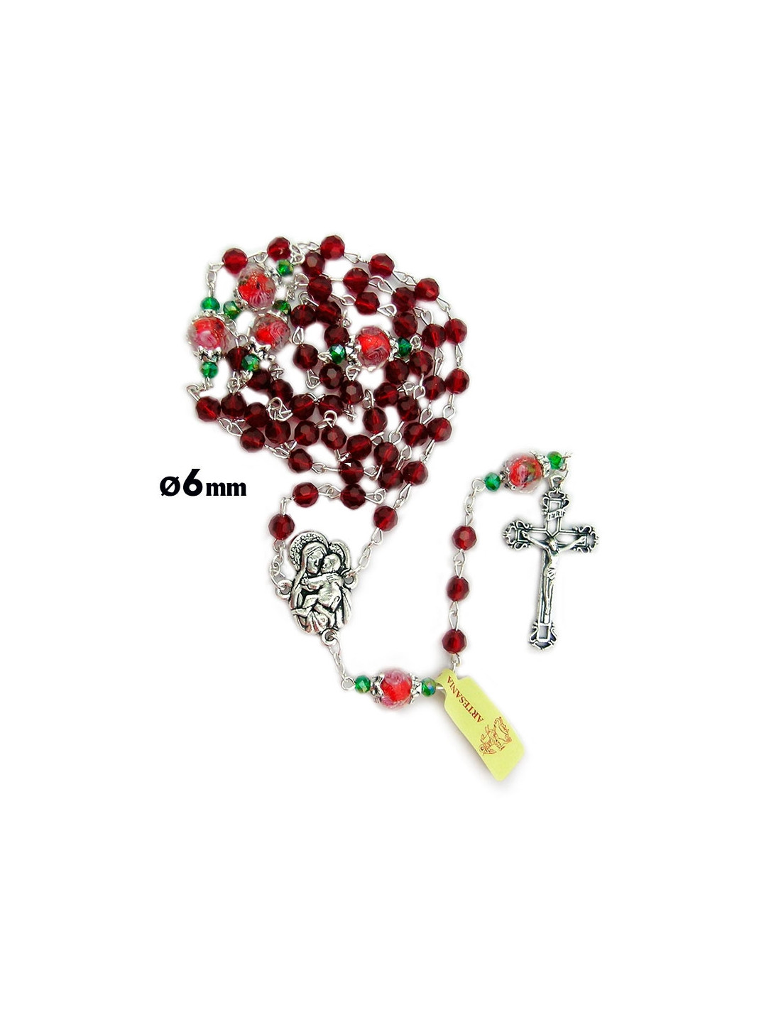 Rosario Cristal Tallado 6Mm Rojo Pater 10Mm Con Rosa Interna