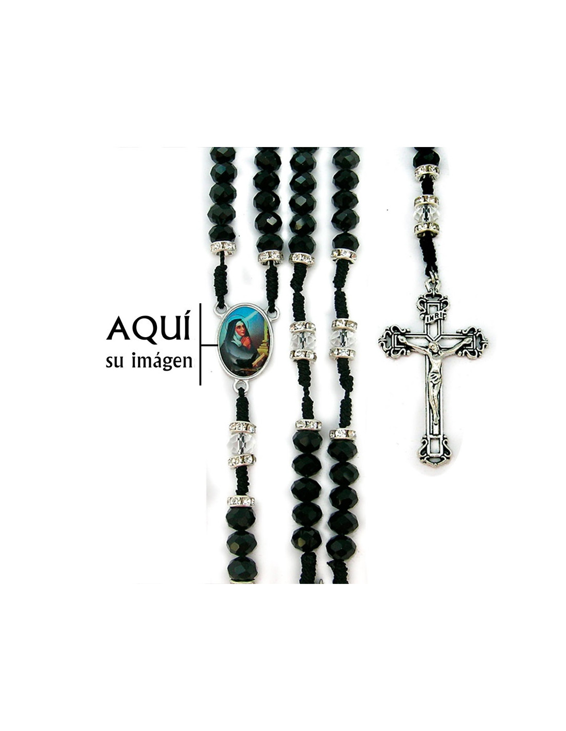 Rosario Cuerda Bola Negra Cristal Opaca 8Mm Con Piedras En Paters