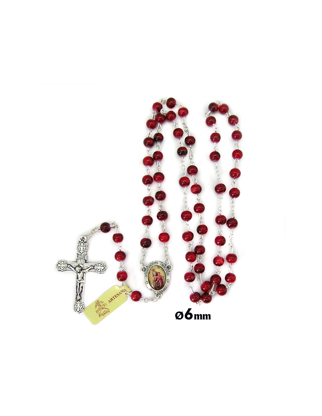 Rosario Cristal Imitacion Marmol Rojo 6Mm