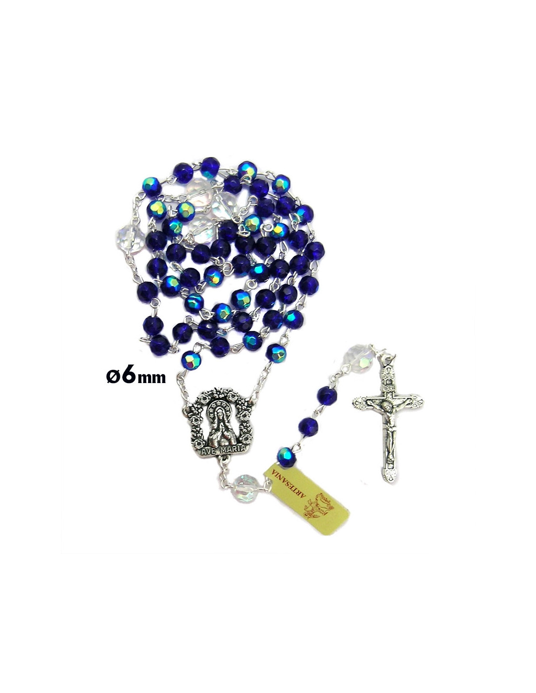 Rosario Cristal Tallado 6Mm Azul Intenso Con Pater 8Mm Cristal Trasparente