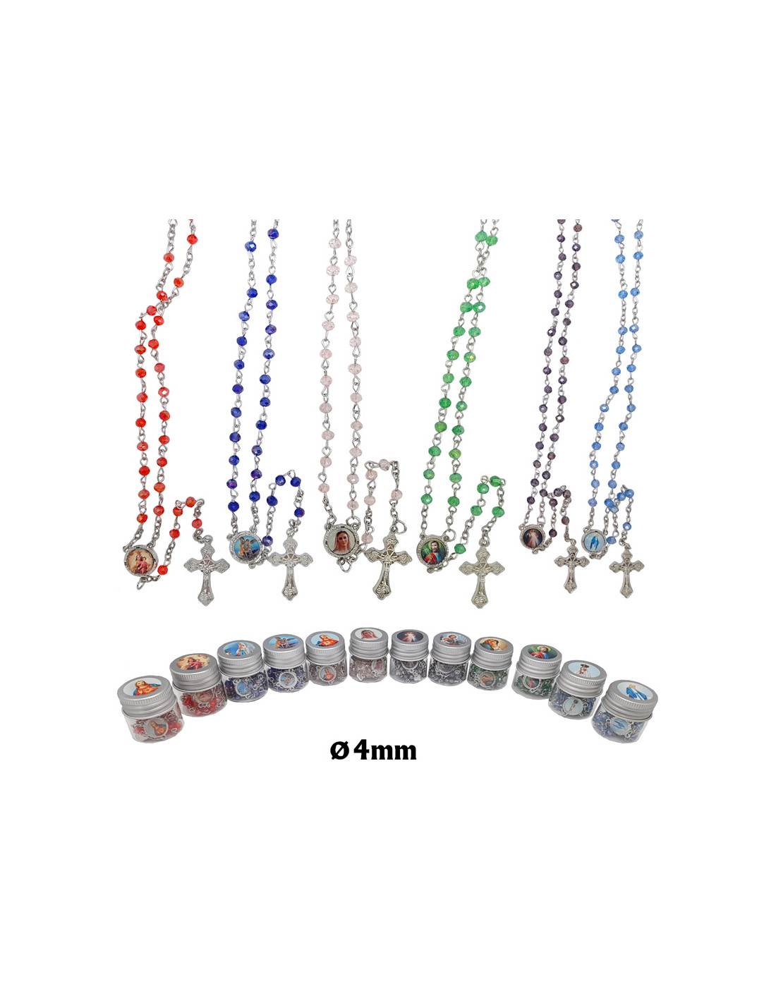 Rosario Cristal Tallado 4Mm En Tarrito Tapon Metalizado
