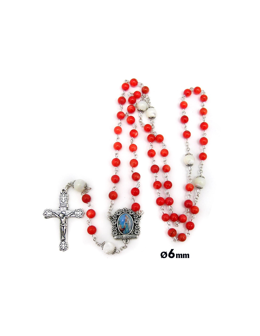 Rosario Cristal Perla Rojo 6Mm Paters Nacar Liso 8Mm Con Copetas