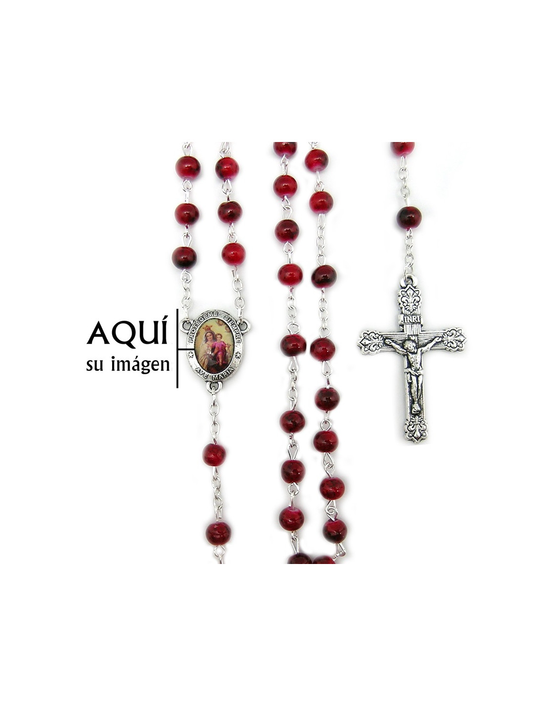 Rosario Cristal Imitacion Marmol Rojo 6Mm