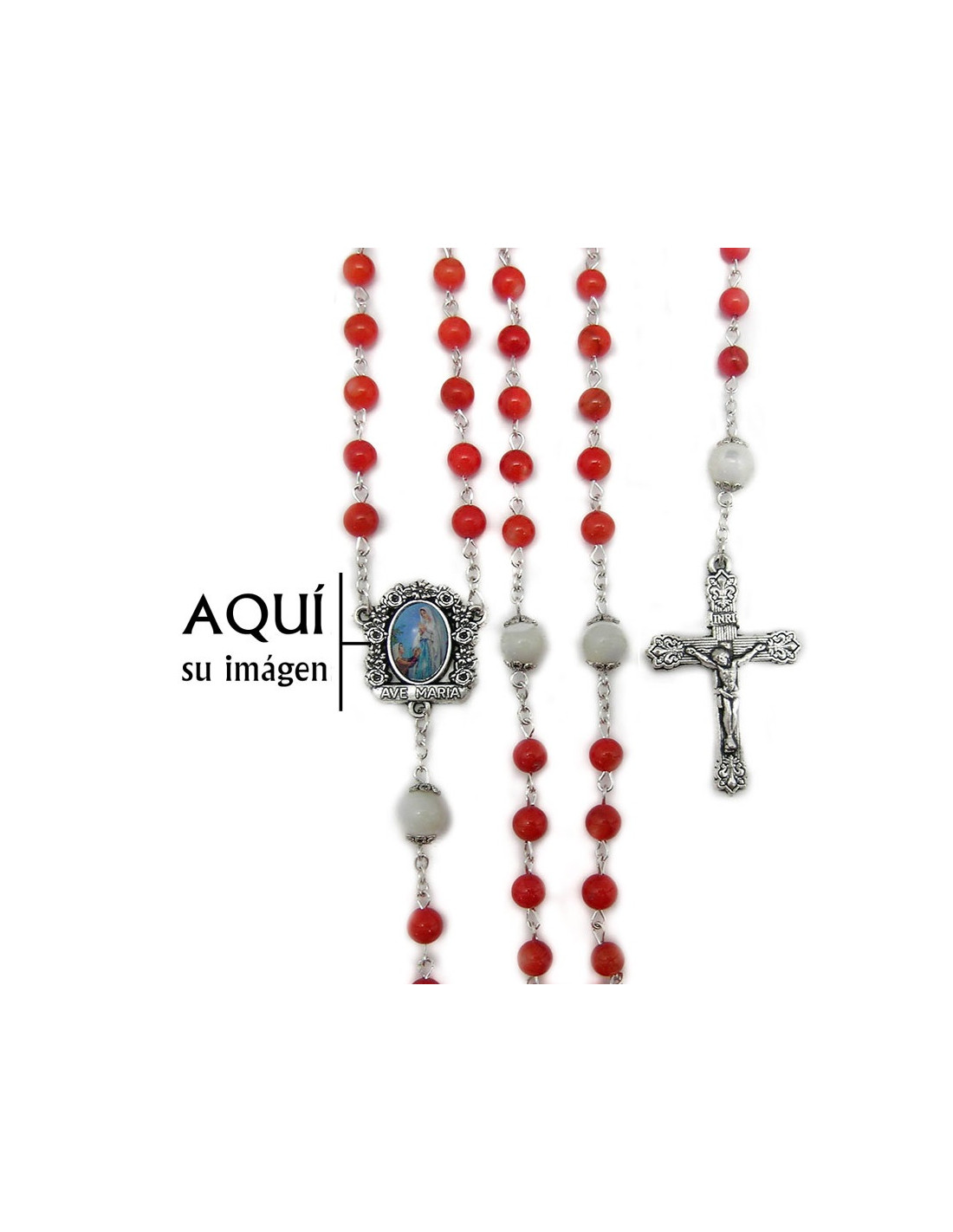 Rosario Cristal Perla Rojo 6Mm Paters Nacar Liso 8Mm Con Copetas