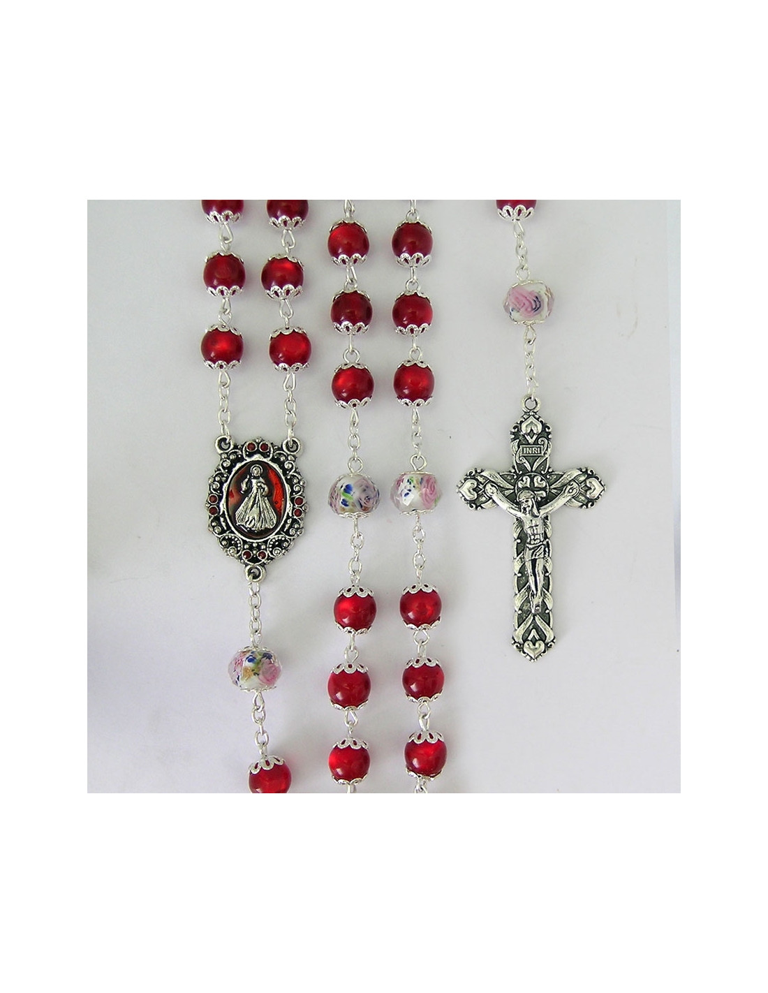 Rosario Cristal Rojo 8Mm Misericordioso Paters 8Mm Grano Rosa Interna Y Copetas