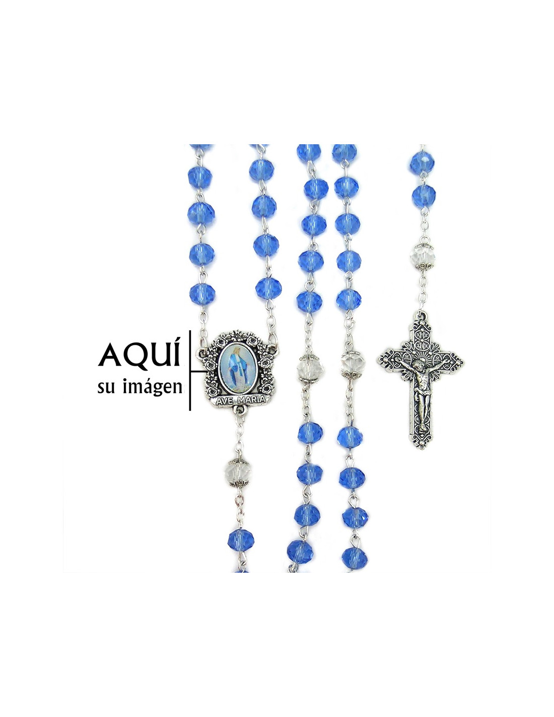 Rosario Cristal Azul Claro Oval 8X6mm Paters Trasparentes Con Copetas