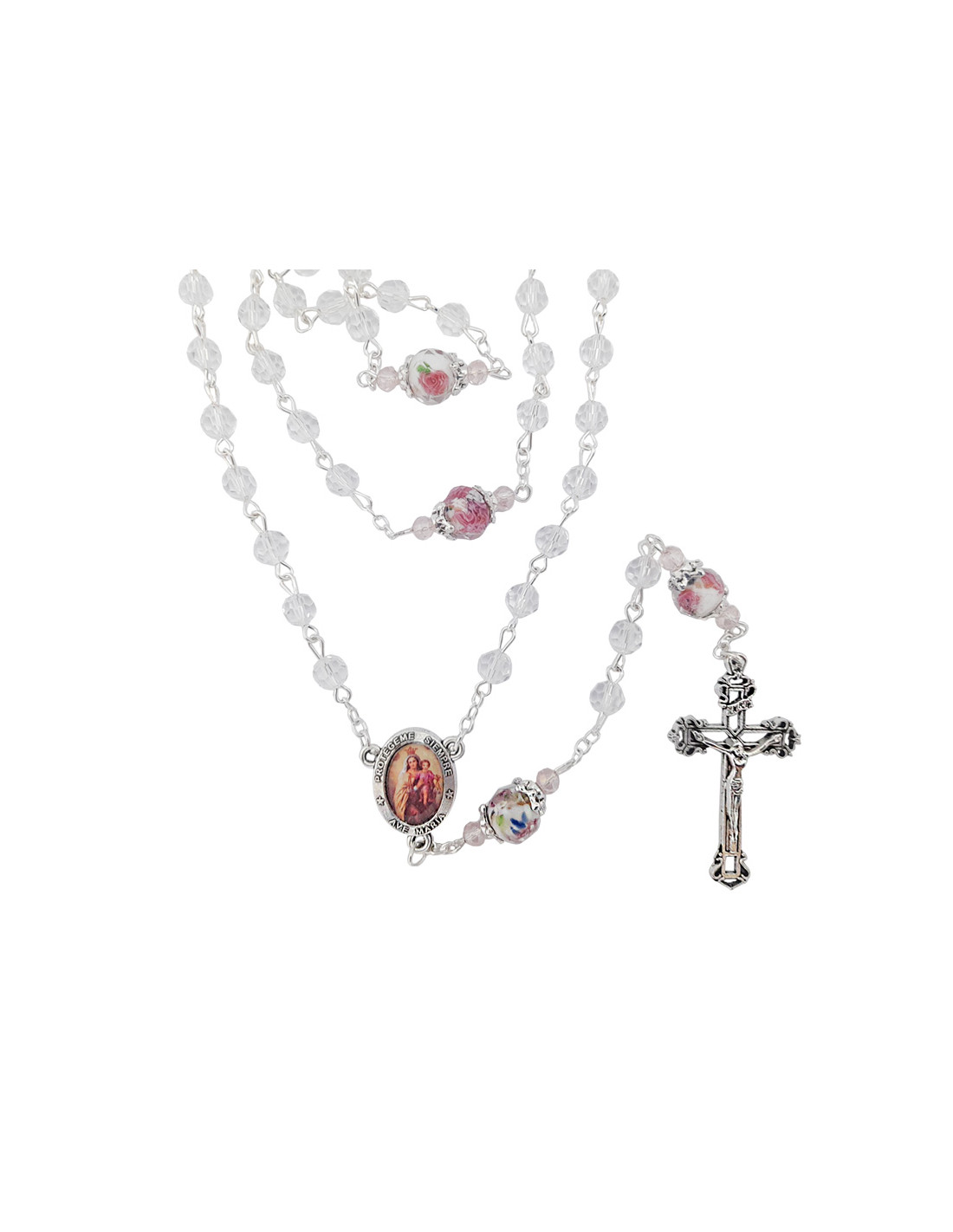 Rosario Cristal Tallado 6Mm Trasparente Pater 10Mm Con Rosa Interna Fin
