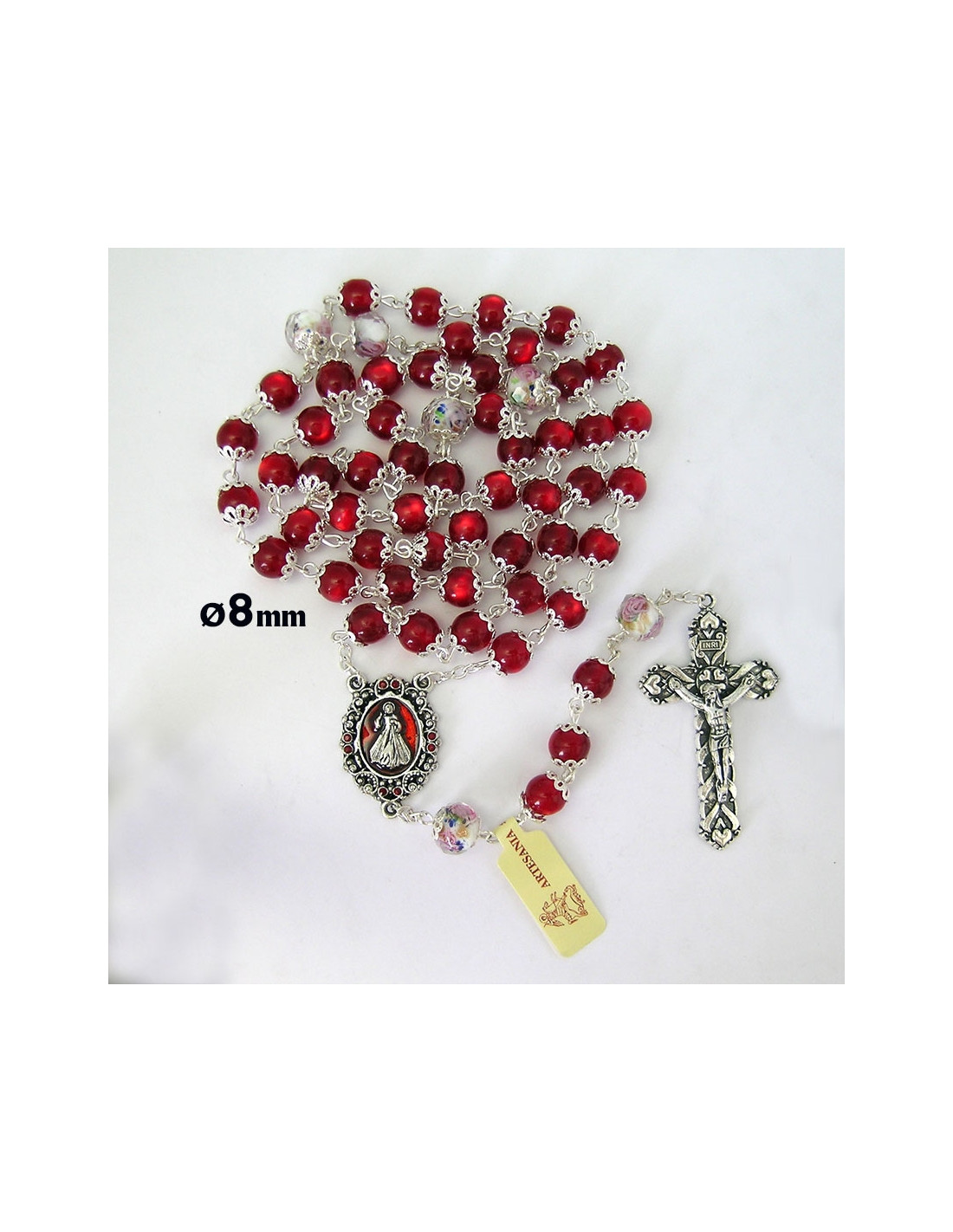 Rosario Cristal Liso 8mm Estampado Rojo Maria Corazon Personalizada Copetas