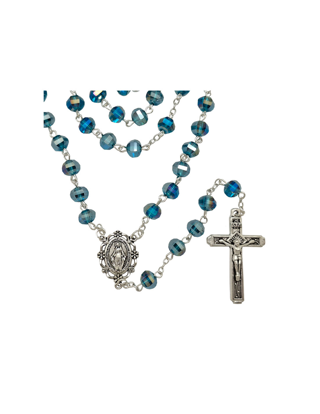 Rosario Cristal Tallado 6Mm Agua Marina Corte Irregular Laminado