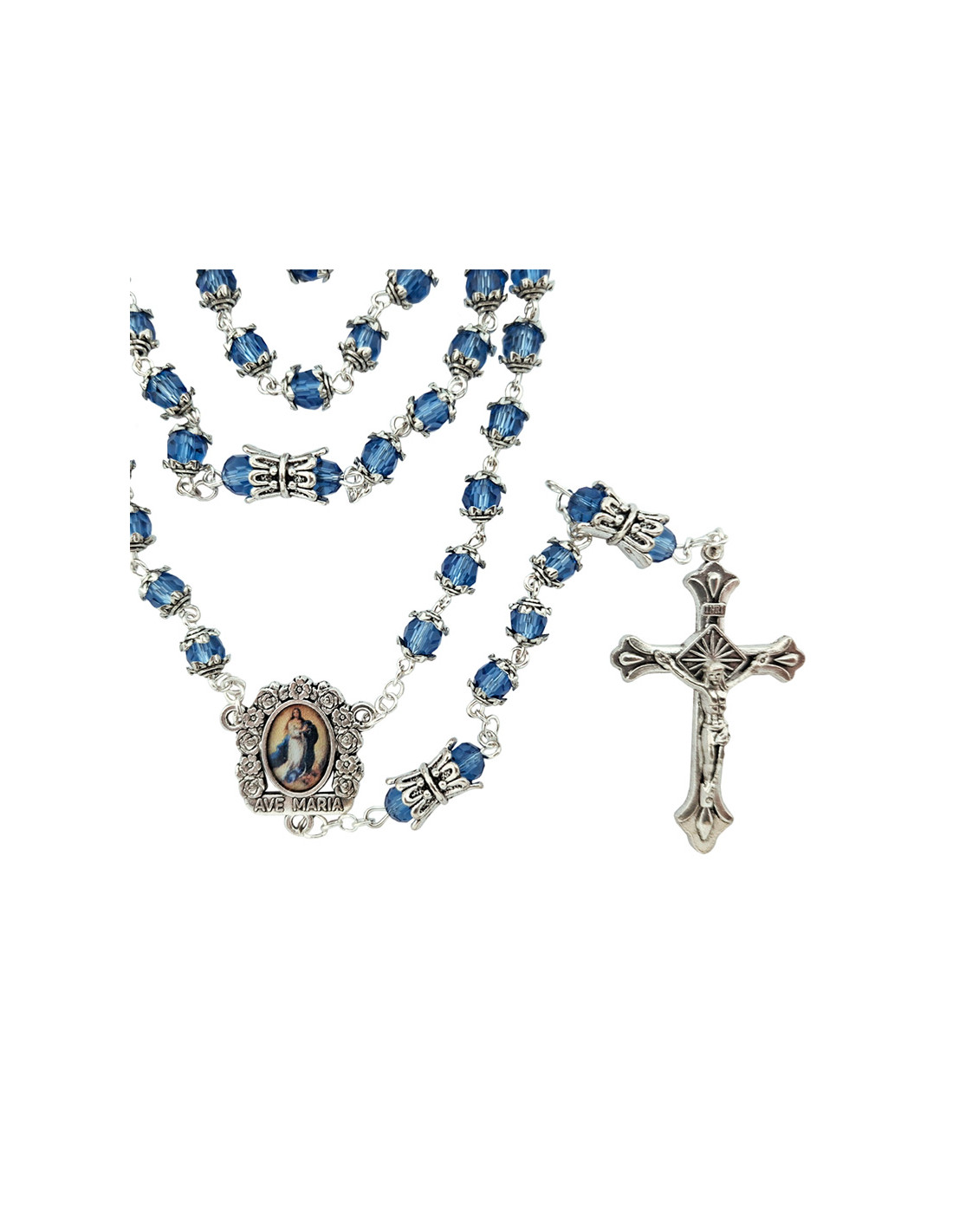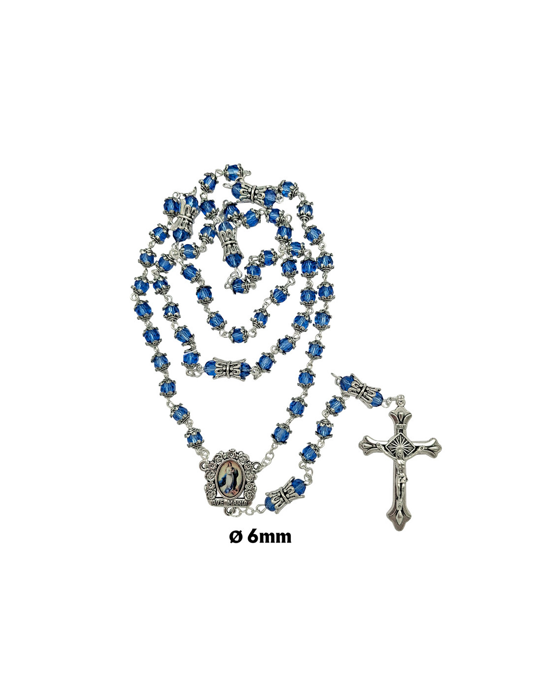 Rosario Cristal Tallado 6Mm Azul Con Copetas Y Paters Doble Metal
