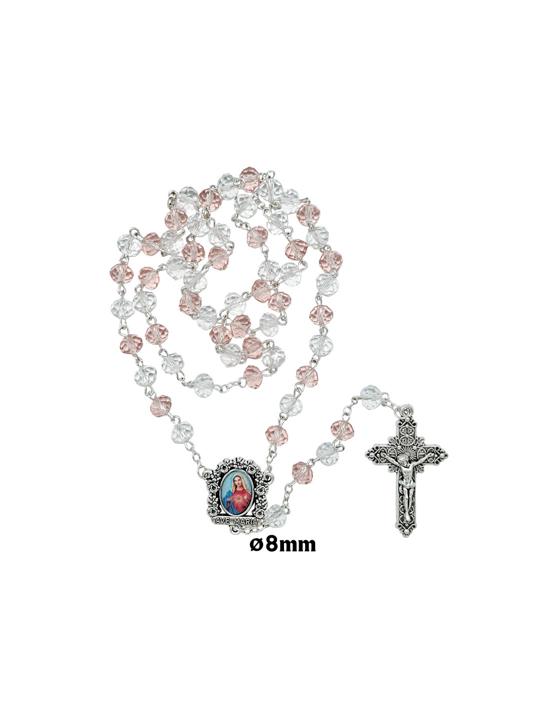 Rosario Cristal Oval 8X6mm Trasparente Y Rosa Alternos