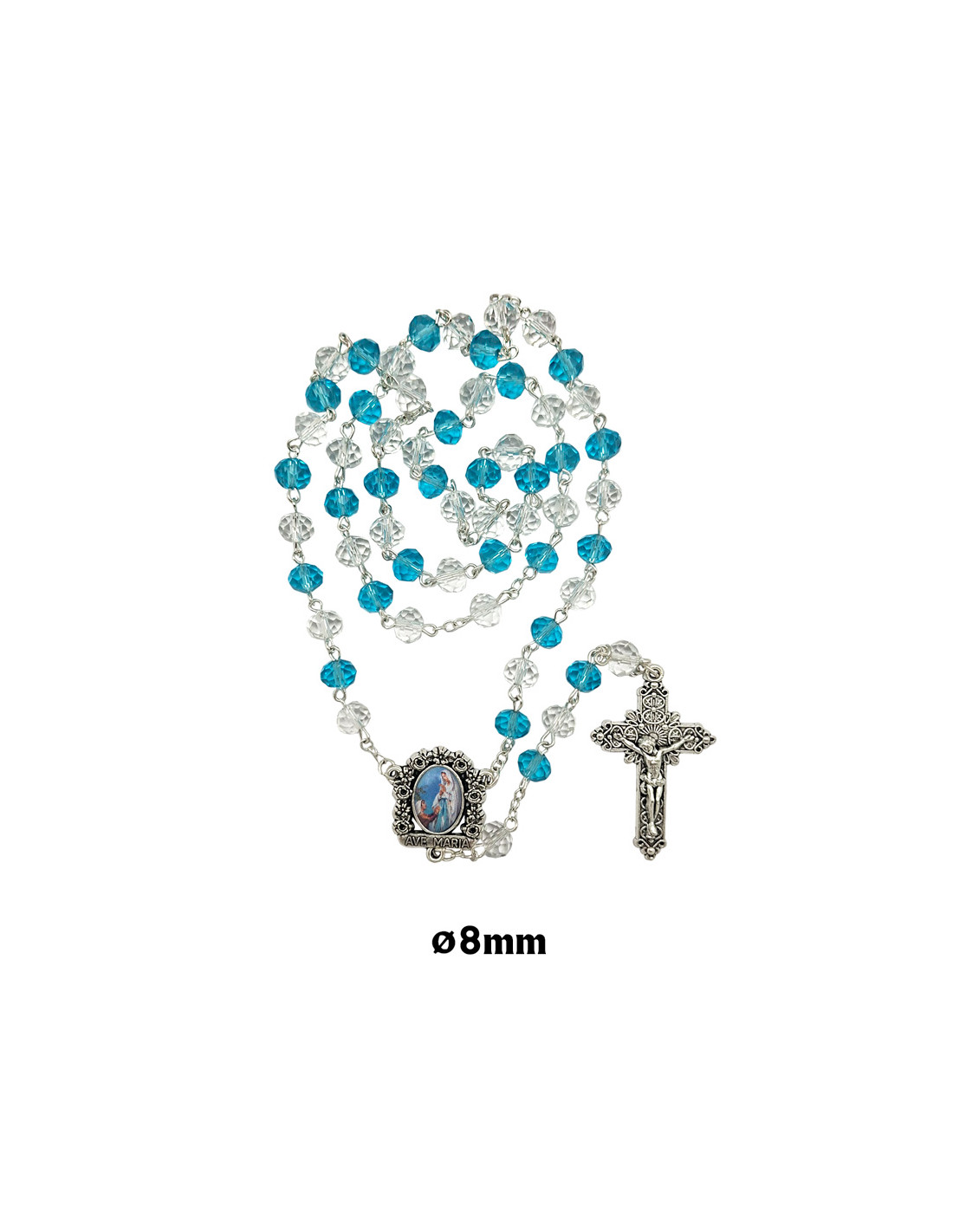 Rosario Cristal Oval 8X6mm Trasparente Y Celeste Alternos