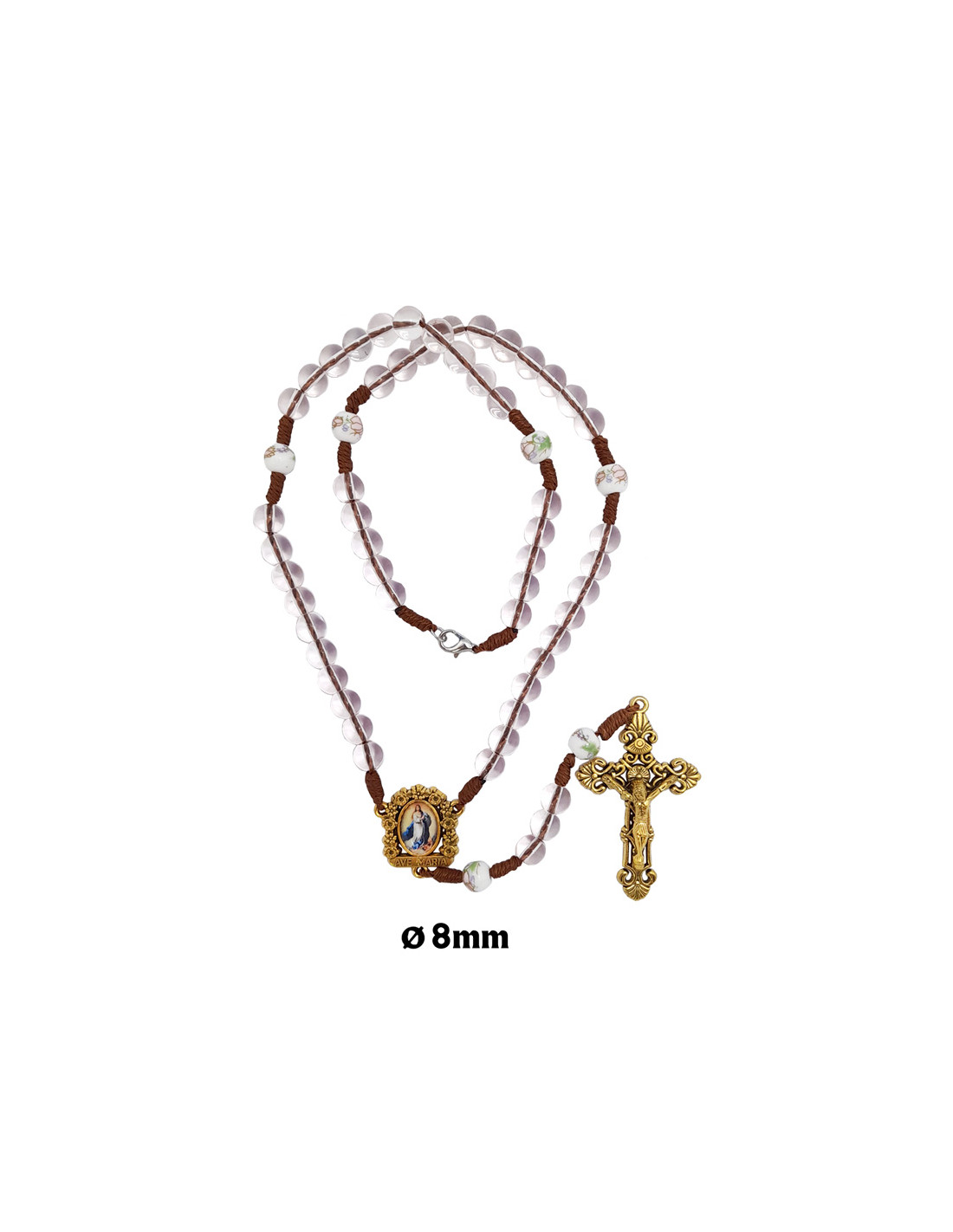 Rosario Cristal Rosa Con Cuerda 8Mm Con Paters Ceramica Cruz Y Maria Dorada