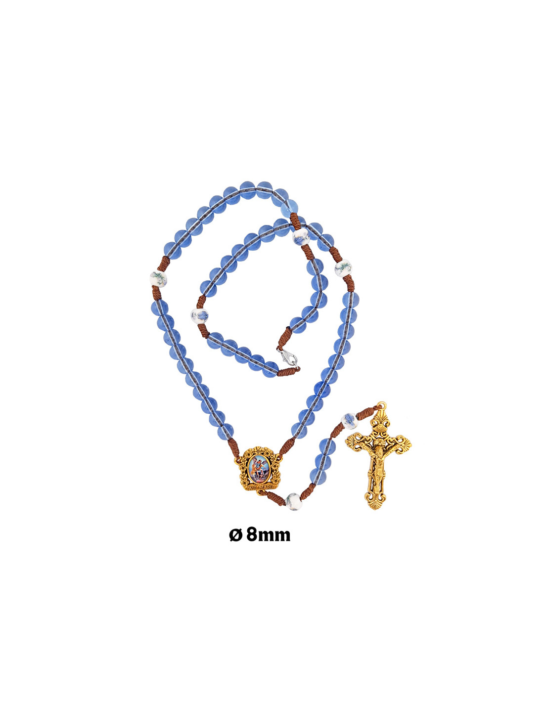 Rosario Cristal Azul Con Cuerda 8Mm Con Paters Ceramica Cruz Y Maria Dorada