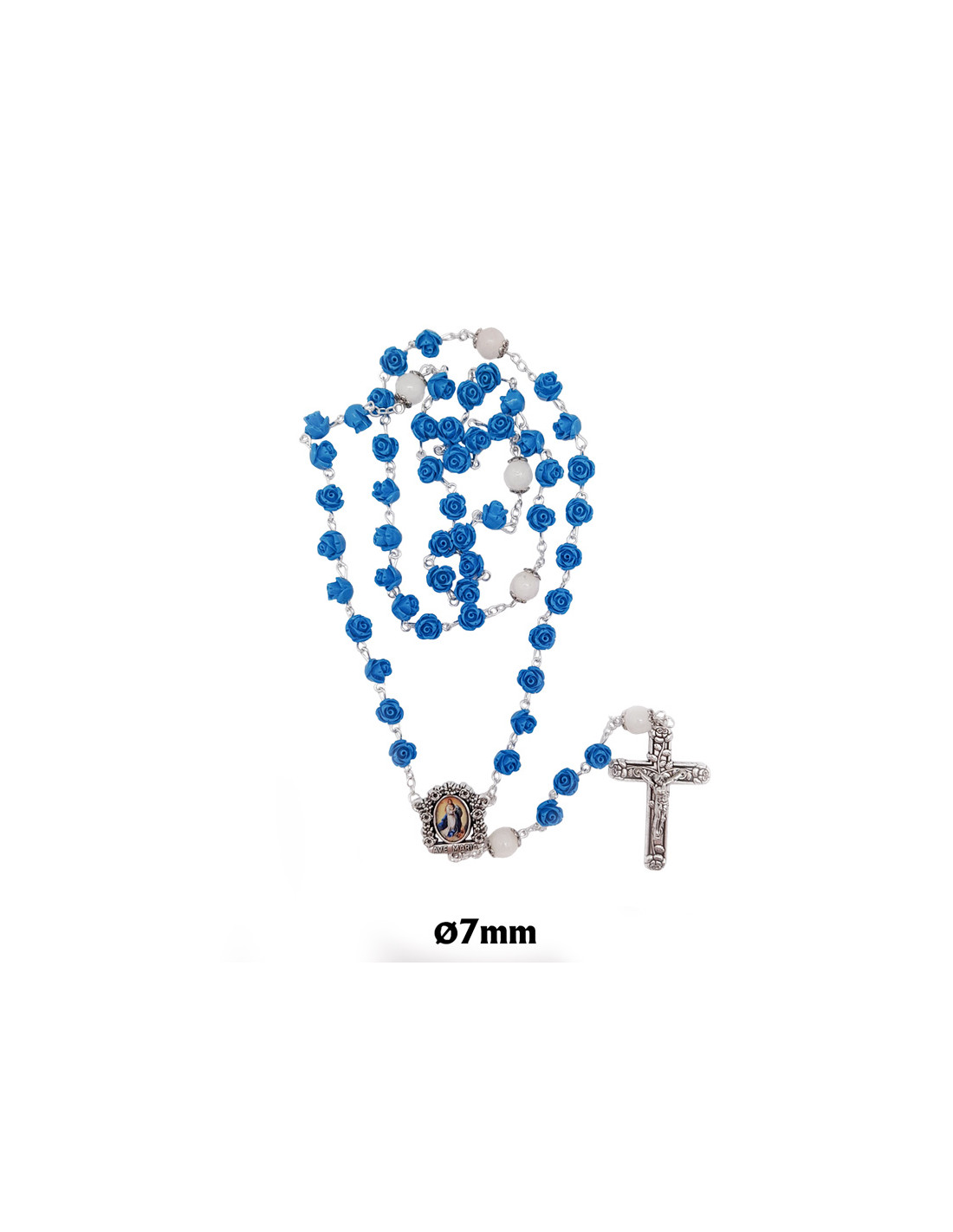 Rosario Resina Flor Azul 8Mm Paters Nacar Con Copeta