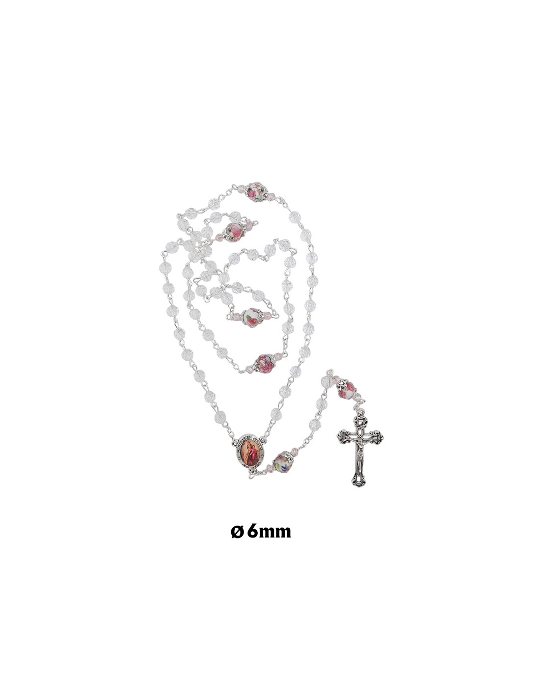 Rosario Cristal Tallado 6Mm Trasparente Pater 10Mm Con Rosa Interna Fin
