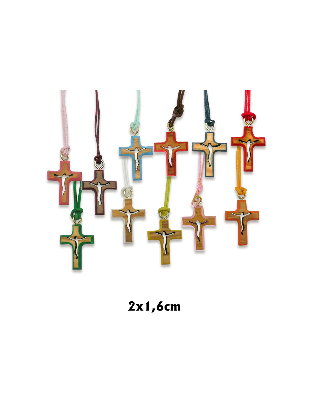 Cruz Madera En Color Cristo Grabado 22X15mm Cordon A Color De La Cruz
