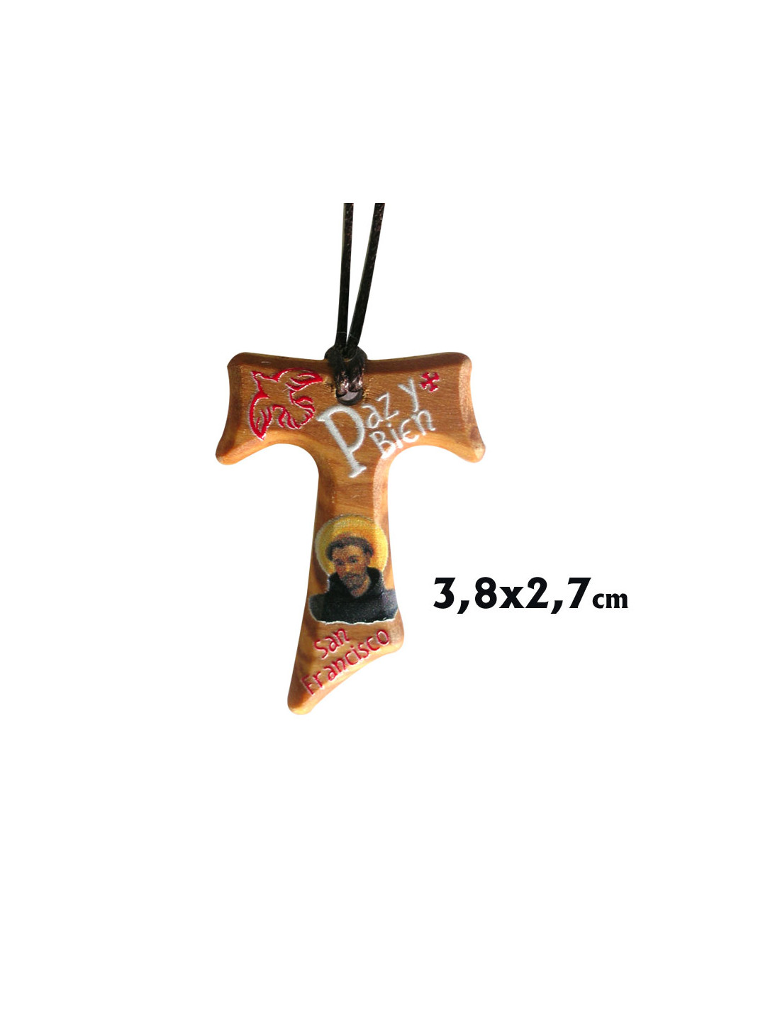 Cruz Tau Serigrafiada Paz Y Bien Con San Francisco 38X27mm En Caja Y Folleto Oraciones