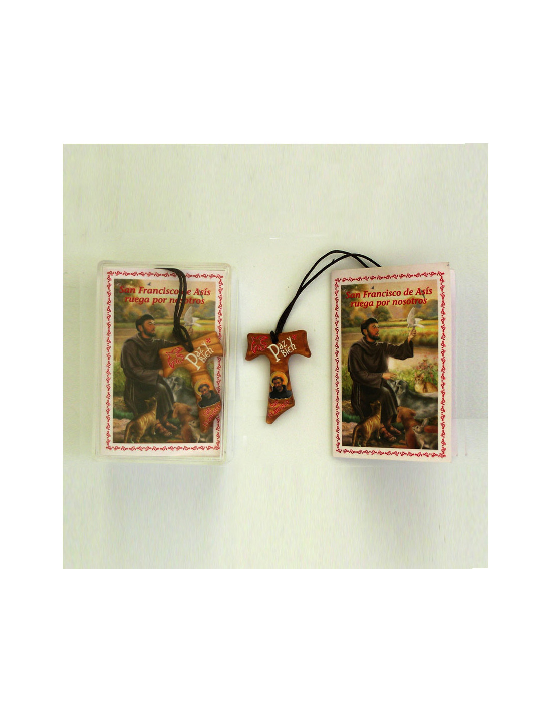 Cruz Tau Serigrafiada Paz Y Bien Con San Francisco 38X27mm En Caja Y Folleto Oraciones