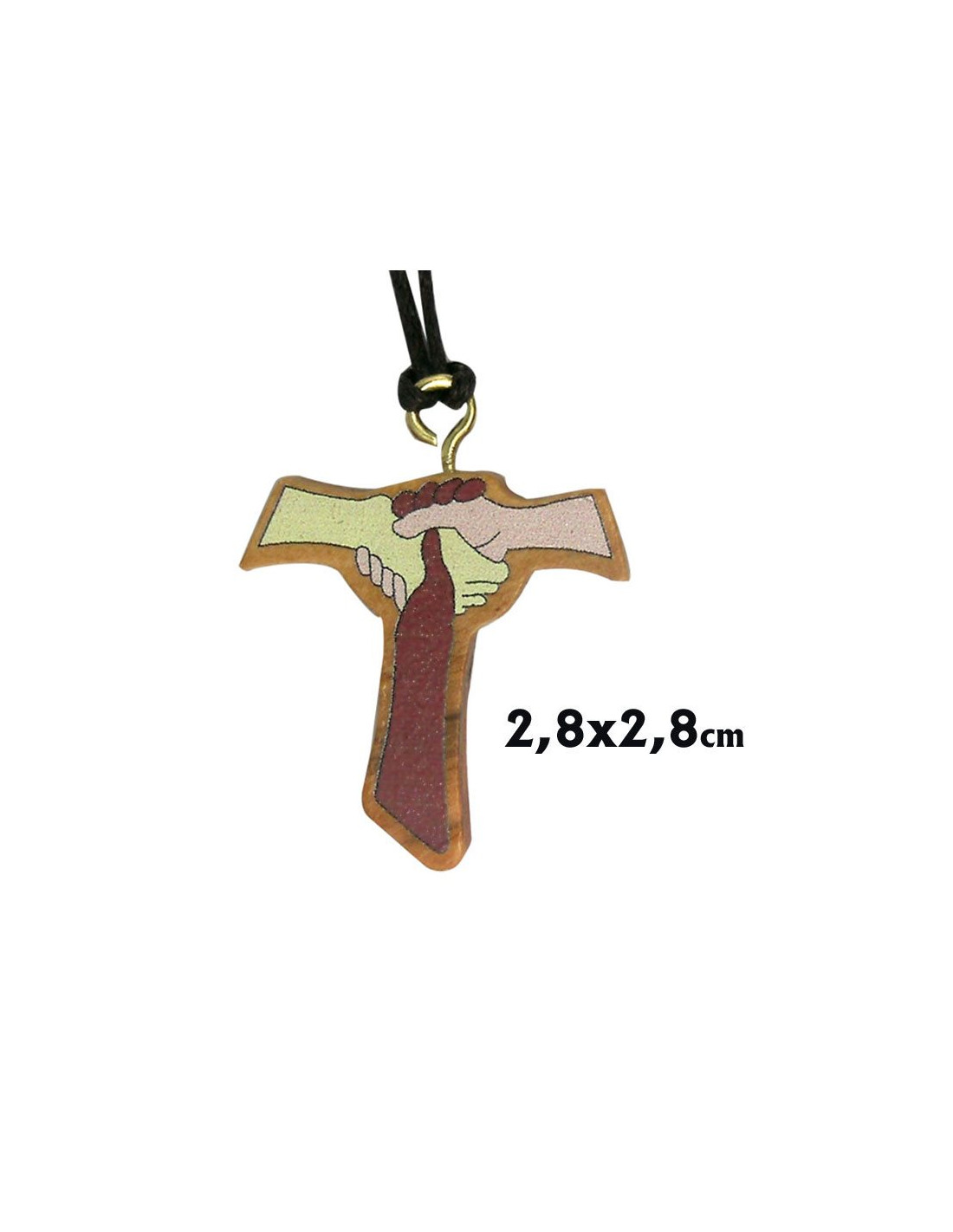 Cruz Madera Olivo De La Amistad 28X28mm Manos Entrelazadas Pintadas