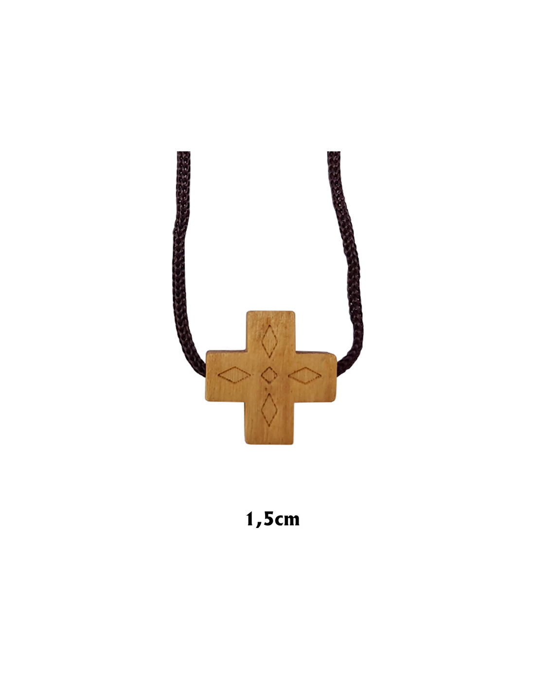 Cruz Madera Clara Cuadrada Grabado Interno Ambas Caras 15X14mm Con Cordon