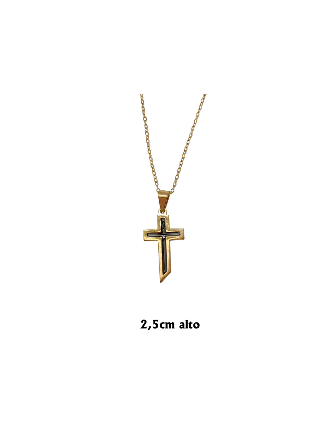 Cruz Colgante Acero Dorada Plana Esmalte Azul 3X1. 6Cm Punta Inferior Y Cadena