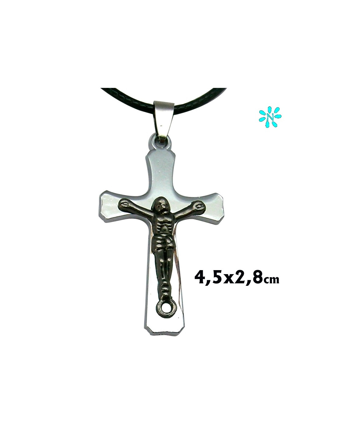 Cruz Colgante Acero Plana 4. 5X2. 8Cm Con Cristo Relieve