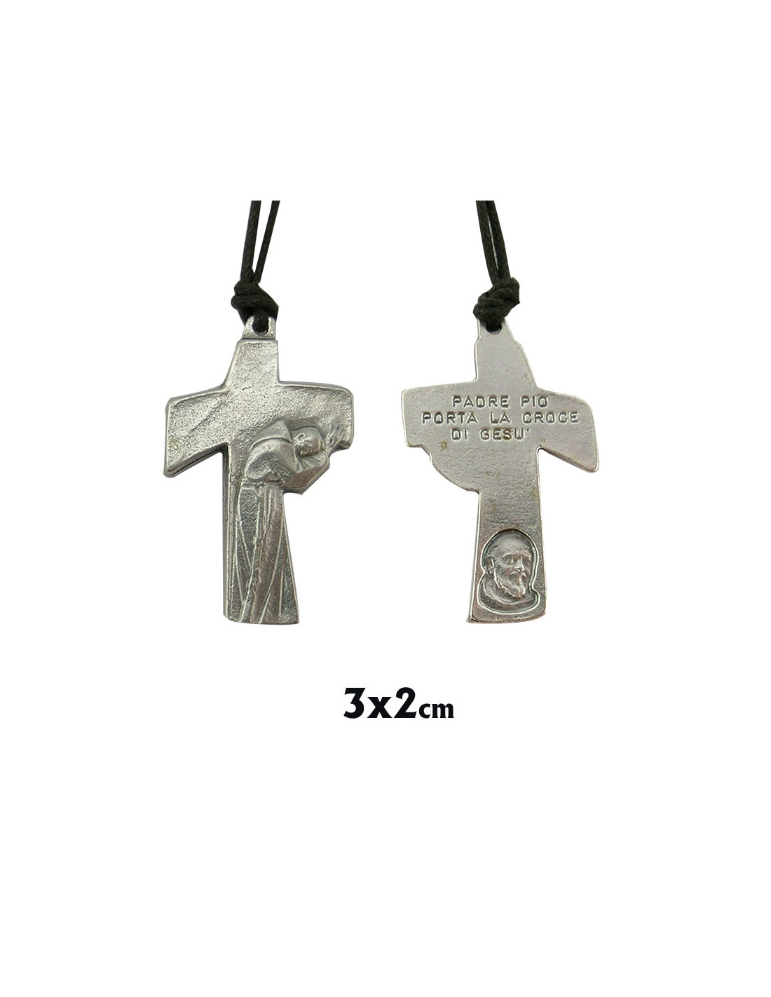 Cruz Metal Irregular Padre Pio 3X2cm Con Cordon Marron