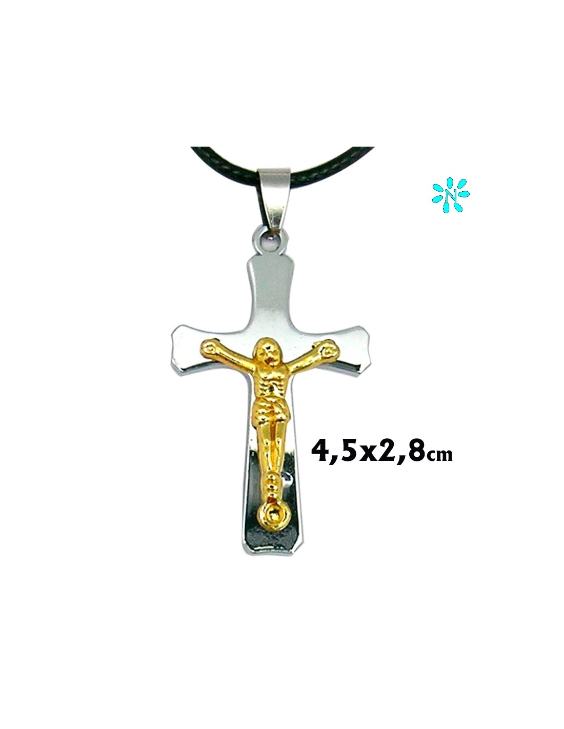 Cruz Colgante Acero Plana 4. 5X2. 8Cm Con Cristo Dorado Relieve