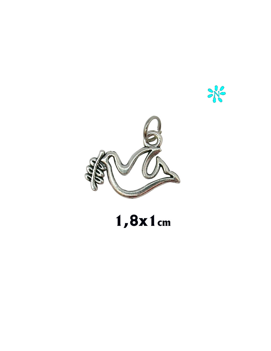 Colgante Metal Paloma Hueca Con Rama En El Pico 18X10mm