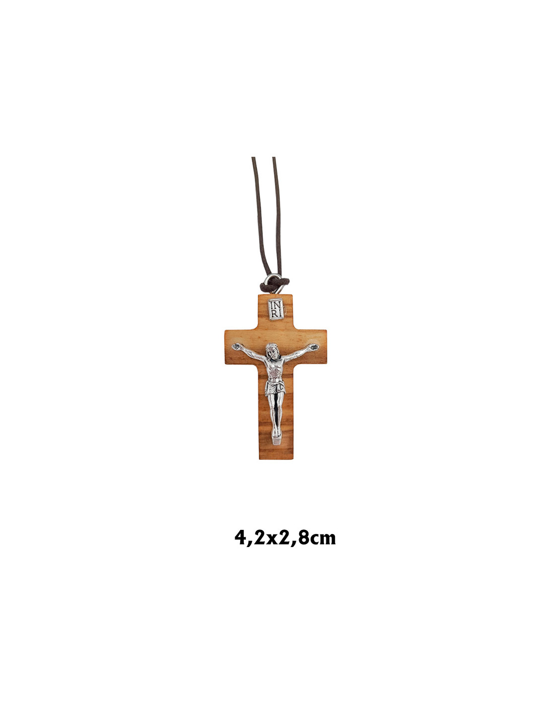 Cruz Madera Olivo 4. 2X2. 8Cm Cristo E Inri Con Cordon