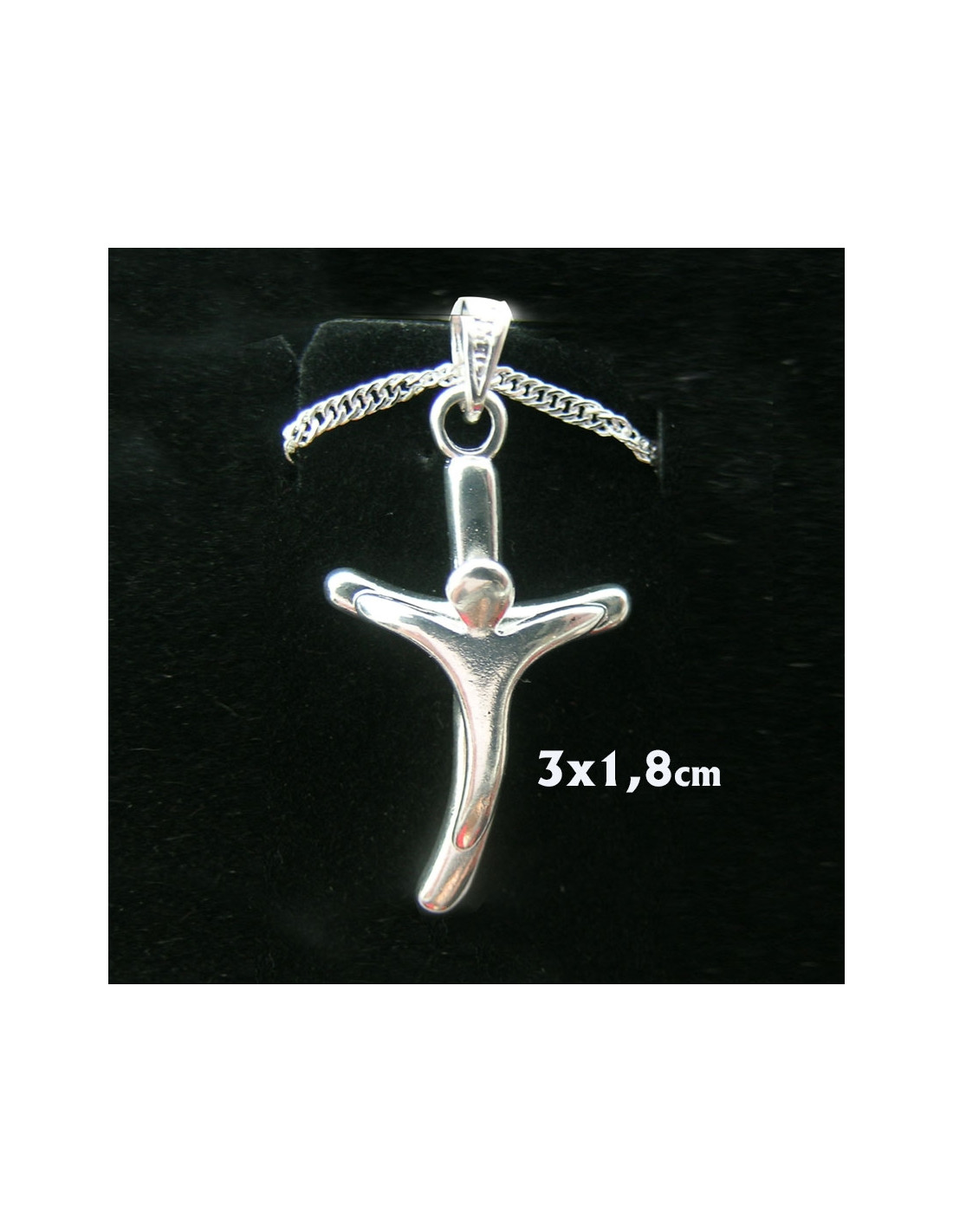 Cruz Metal Con Cristo Moderno Plateado Al Aire 3X1. 8Cm