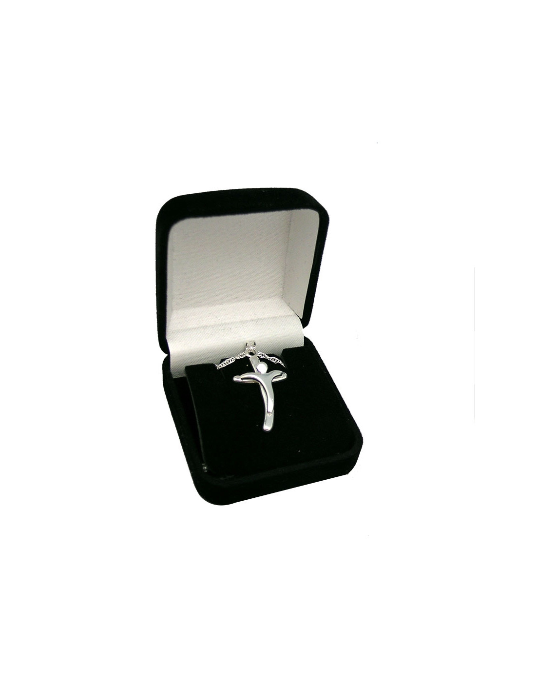 Cruz Metal Con Cristo Moderno Plateado Al Aire 3X1. 8Cm
