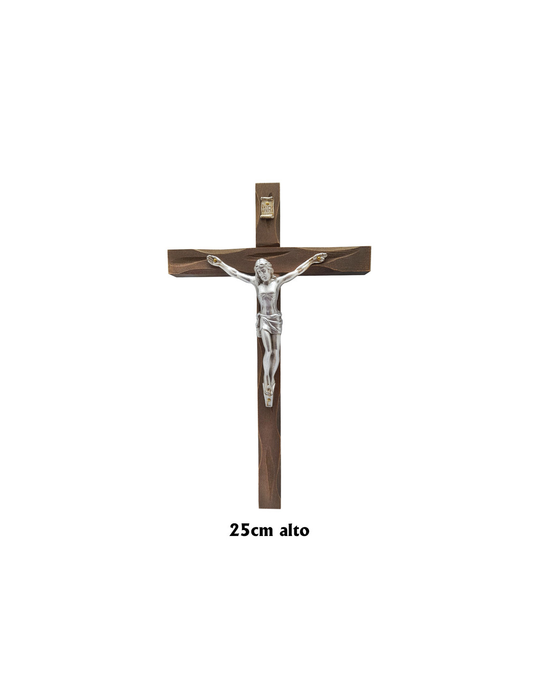 Crucifjo Madera Oscura Trabajada 25X15cm Cristo E Inri Con Caja Individual